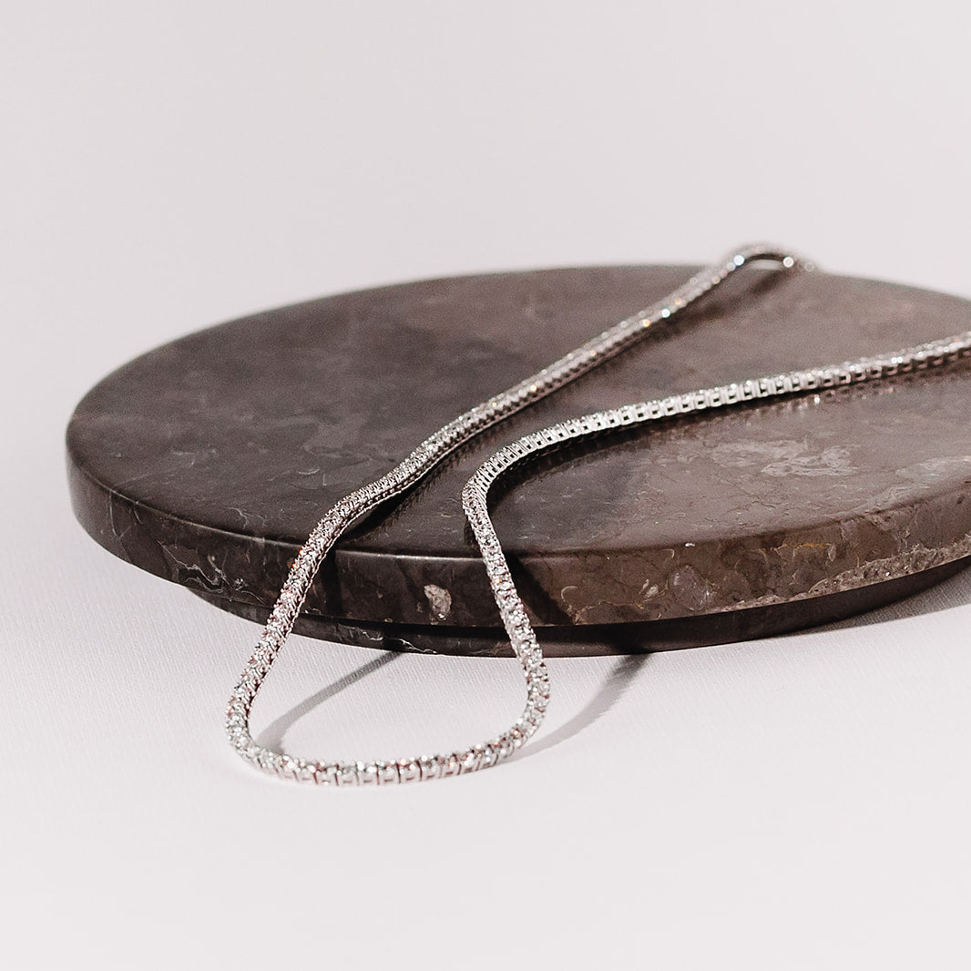 A diamond tennis necklace designed for everyday wear. Subtle enough to layer, polished enough to wear on its own.